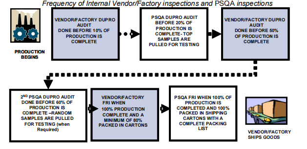 - 工厂须已完成内部生产过程检验(DUPRO)和 / 或最终随机检验(FRI)且结果合格,并准备好相关记录供 PSQA 审核员查阅。