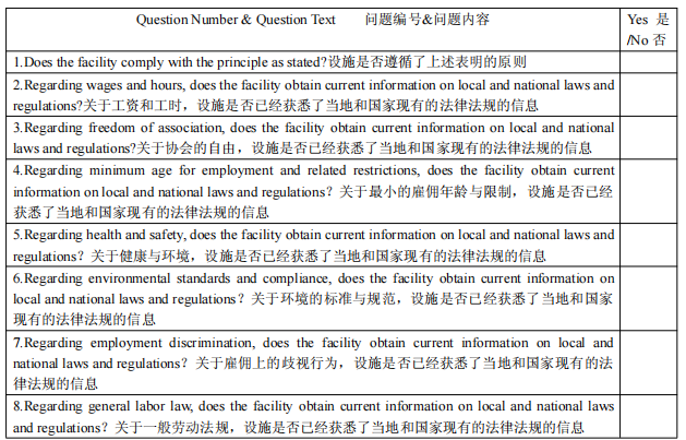 原则1 - 法律和道德的商业行为:所有由VF公司授权的设施必须完全遵守所有适用的法律法规,这些法律法规包括法律,规章,涉及到工资,工时,就业,劳动,健康和安全,环境,移民,和服装行业的制度。雇主必须遵循道德的商业行为。