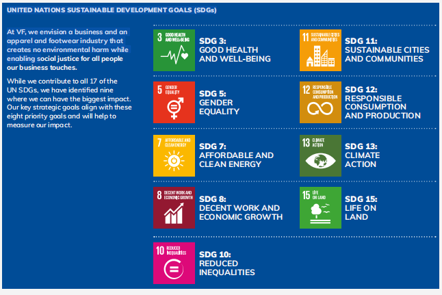“为变革而生” 战略是通过协作方式制定的,凝聚了利益相关方与 VF 旗下所有品牌的力量。尽管该战略不具备强制性,但已被所有 VF 品牌采纳。