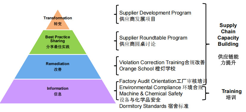 工厂信息强制披露:供应商必须提前向买手或相关采购人员披露所有在审核范围之内的生产工厂的名称和地点。即日起,沃尔玛对未经授权的分包实施零容忍政策,如供应商从未经授权的分包商处为沃尔玛采购商品,沃尔玛将终止与该供应商的合作。任何产品在最终确认前供应商须在样板标签上列出生产工厂编号。