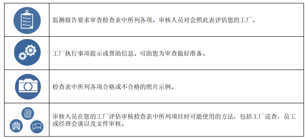 2. 本培训手册检查表中各项顺序与审核人员评估您工厂时所用的检查表顺序完全一致。