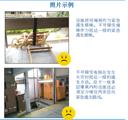 2. 要求授予相应权限,以便检查从设施顶楼直达一楼的竖向紧急逃生路线。例如: