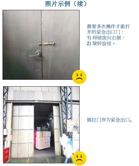 4. 如果因拒绝进入而无法打开或审核员无法打开,则紧急出口门不具可操作性。