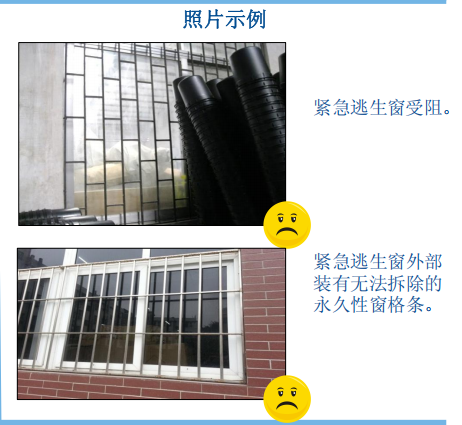 2. 紧急逃生窗外部必须设有楼梯平台,例如外部火灾逃生通道。