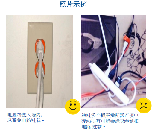 1. 电线不得造成绊倒、触电死亡或引起火灾的危险。