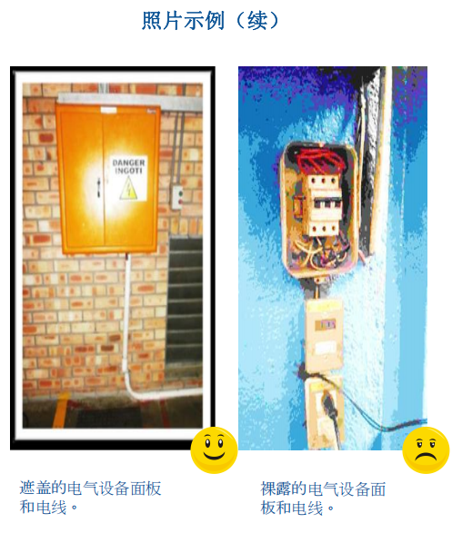 1. 设施走访期间,观测电源和电气设备面板的组织和状况。