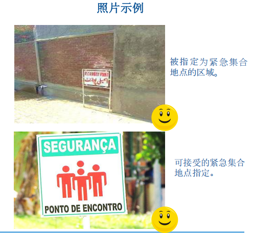 WAL-MART验厂咨询-设施紧急集合地点合规要求:需设安全距离、远离火险且满足容纳需求