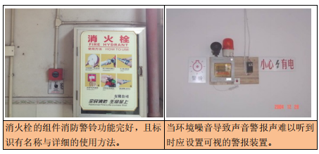 当环境噪音导致声音警报声难以听到时应设置可视的警报装置。