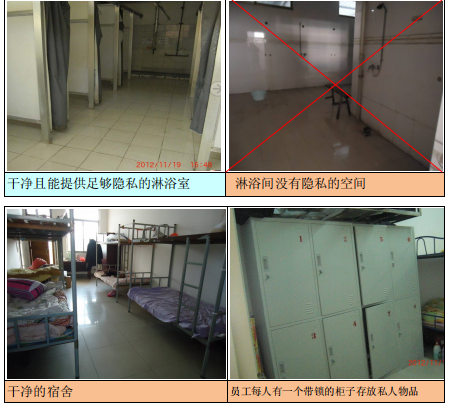 对于宿舍居住者的限制条件,包括宵禁,应该是在合理的考虑人身安全的情况才可使用。所有工人,包括合同工,应该被允许根据自己的意愿离开宿舍,除考虑人身安全的合理原因外,在这种情况下,工厂应将工人运送到他们的目的地。