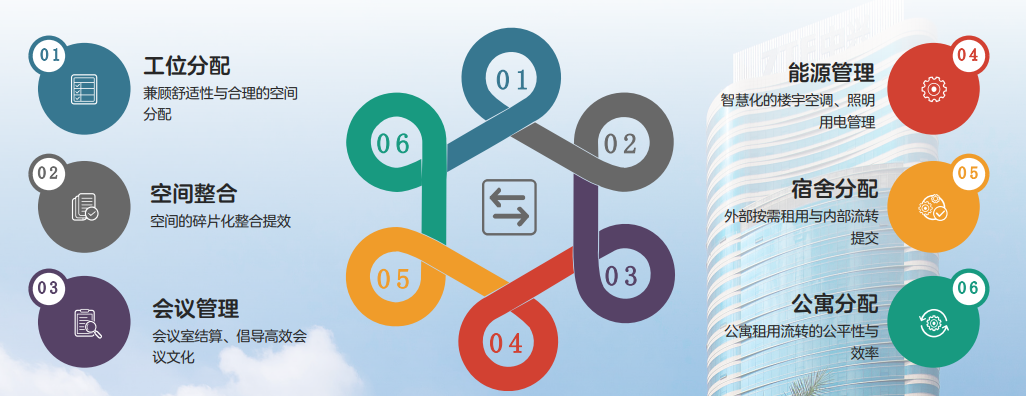 办公空间的修建、运行都产生碳排放,碳足迹与空间大小基本成正比,中兴通讯首先通过精细管理避免不必要的空间需求。例如在不降低员工办公、午休舒适度的前提下,通过办公家具形态的变化提高空间利用率。公司 6% 的办公位从 L 形桌转为直型桌,每个办公位约节省 15% 的空间。 此外公司采用了创新的空间管理模式,结合空间管理及会议管理系统,对全国 21 个园区的空间、楼宇、办公位、会议室等进行全面线上管理,倡导高效的会议文化,空间使用计费驱动业务单位主动提效,避免了不必要的空间浪费、工位及会议室闲置或无效占用及其他配套资源的消耗,提升空间整体利用率。同时,在各地开展智慧园区改造,以中兴通讯自研的数字星云平台为底座,打造智能化管理的数字化支撑,闲置数据透明可视,使空间利用提效的措施更科学、更有效,空间管理系统可帮助节省约 5% 的空间。