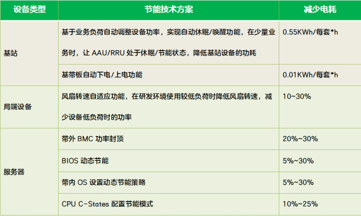 根据不同类型设备、不同应用场景,部署适配的节能策略,减少设备低负荷时的能耗,继而带来碳排放的降低。